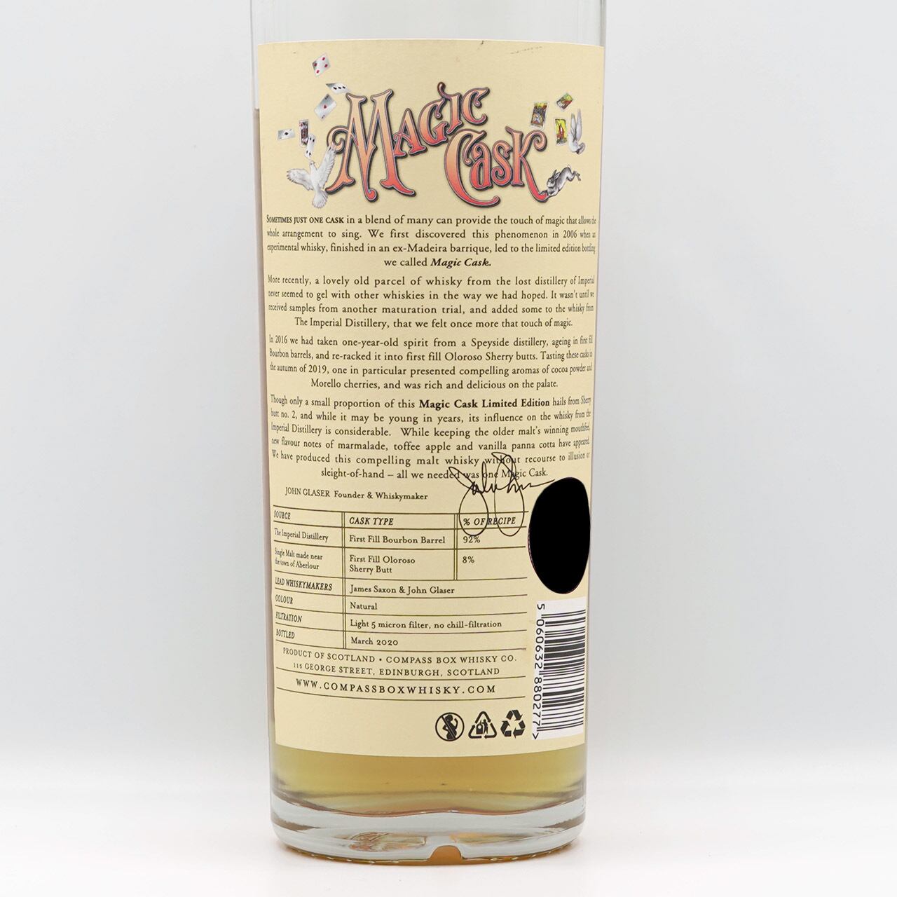 2016年、1年熟成のモルトスピリッツをファーストフィルのオロロソ・シーズニングを施したシェリーバットに再貯蔵し、2019年にそのうちの1樽(カスクNo.2)が特に特徴的な風味を示したことから、同樽を用いたブレンドの検証され、その過程でインペリアル蒸溜所の長期熟成モルト原酒とブレンドされることとなったボトル。